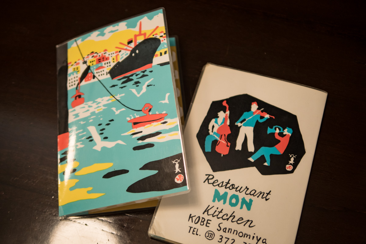 どれを頼んでも当然ハズレなし。メニューのイラストは神戸を代表する版画家・川西英によるオリジナルで神戸らしさが詰まっている。