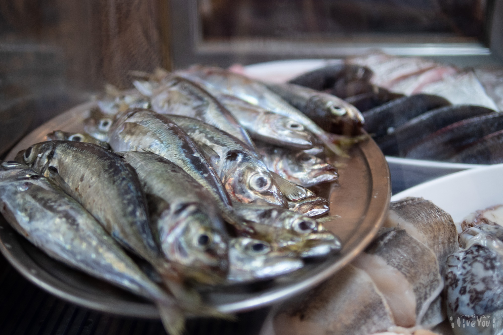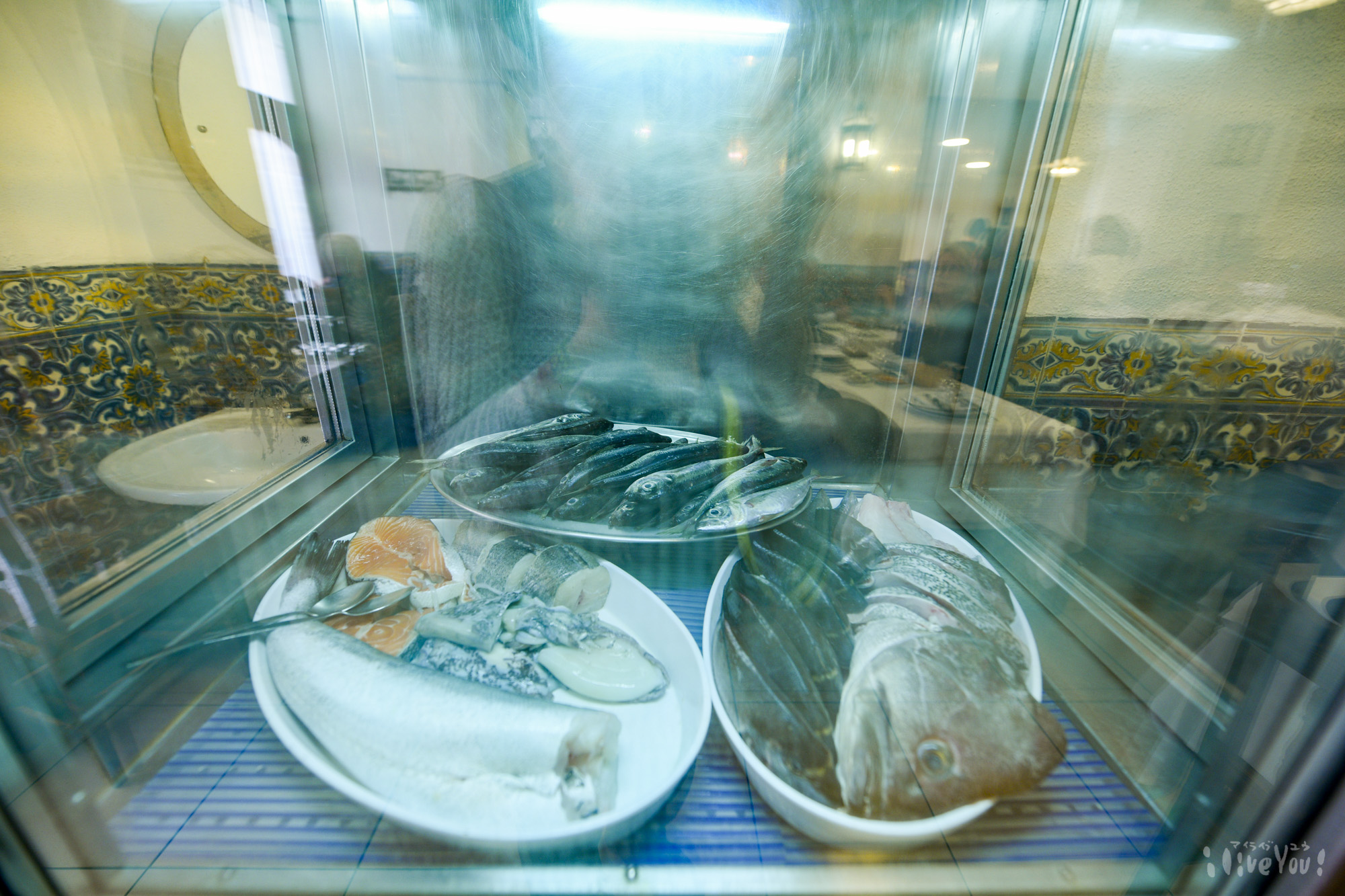 店内に入り、客席の次に目に飛び込んでくるのは、小さな冷蔵ケースの魚介類だ。キラキラした目のイワシを見つけて、わたしの胸は高鳴った。アルファマ地区で話を聞いたときから、食べてみたい気持ちを抱えていたのだ。
