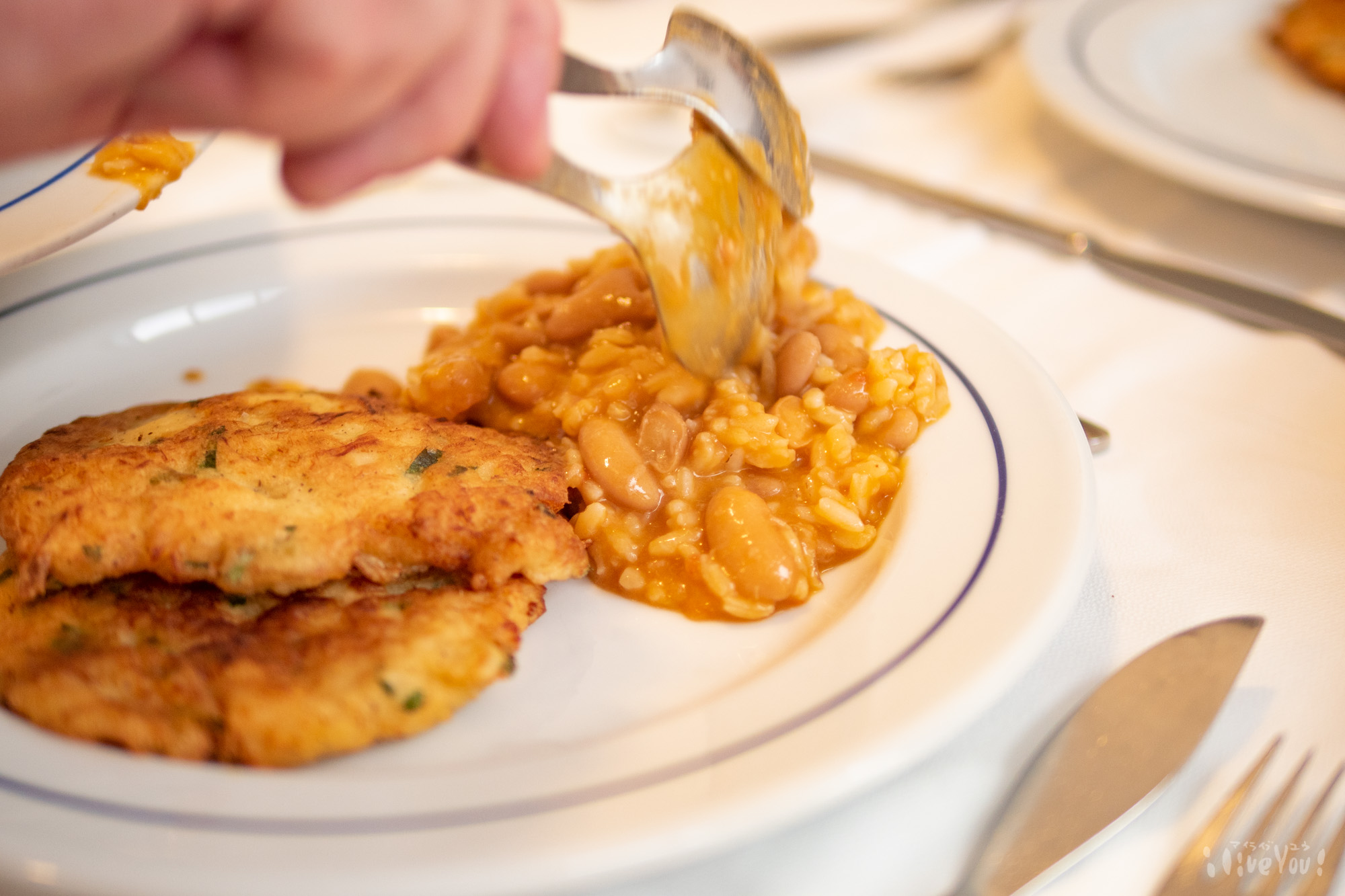味はいい意味で見たまんま、期待した通りの素朴さだ。強いていうならさつま揚げよりパタニスカの方が軽い。かじると表面がサクッとしていて、すり身は素材感がありふわふわさが残っているが、馴染みある「練り物」の雰囲気。地球の裏側まで来て、「知ってるもの」を食べたことに少しパニックになる。インゲン豆の煮込みご飯は優しいトマトスープ味。パタニスカと一緒に食べるとやっぱり合う。これを定番の日常食にしたポルトガル人と日本人のとの「胃の相性」には信頼が置けると、これからの食事への期待だけが募った。