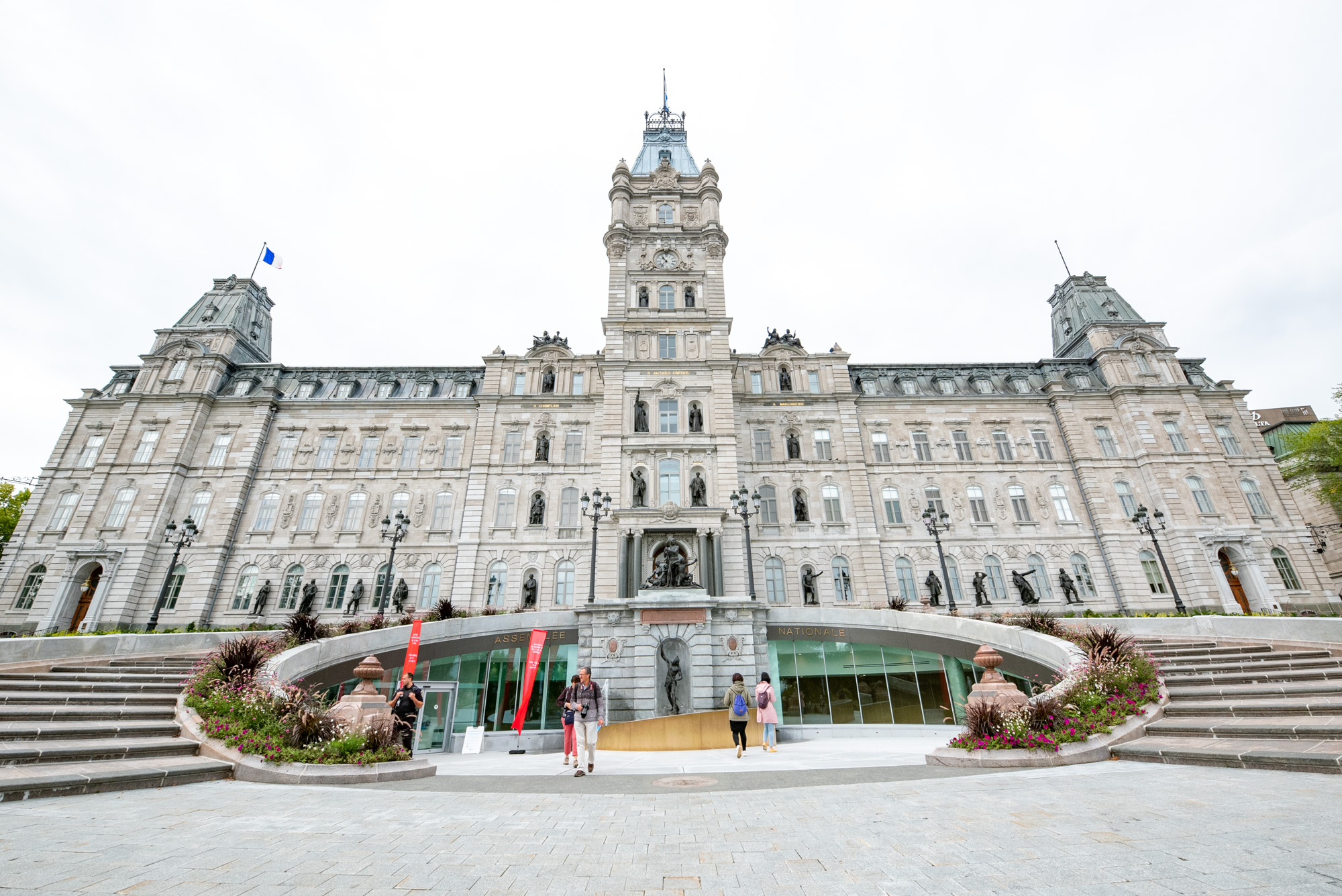 「カナダの起源」と称される古都ケベックシティ。城壁に囲まれた旧市街はヌーベルフランス時代の面影を残す世界遺産都市。フランス式の屋根を乗せた石造りの建物が並び、中世の趣を残している。また、セントローレンス川を見渡せる高台の立地を活かした要塞都市でもあり、現在もカナダ陸軍が置かれている。