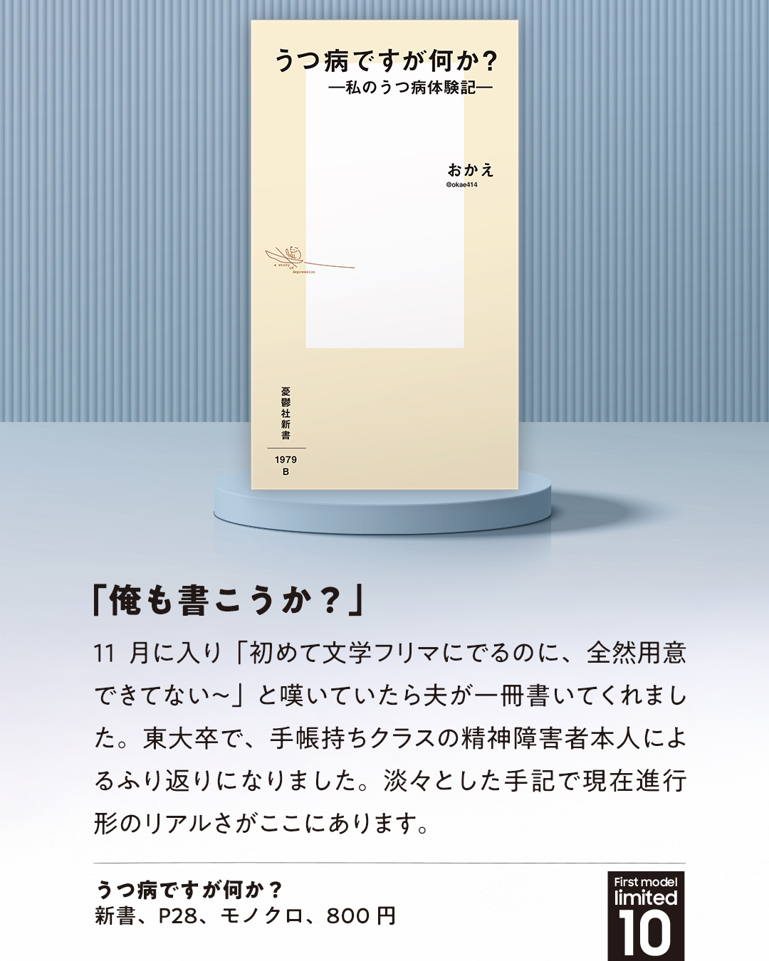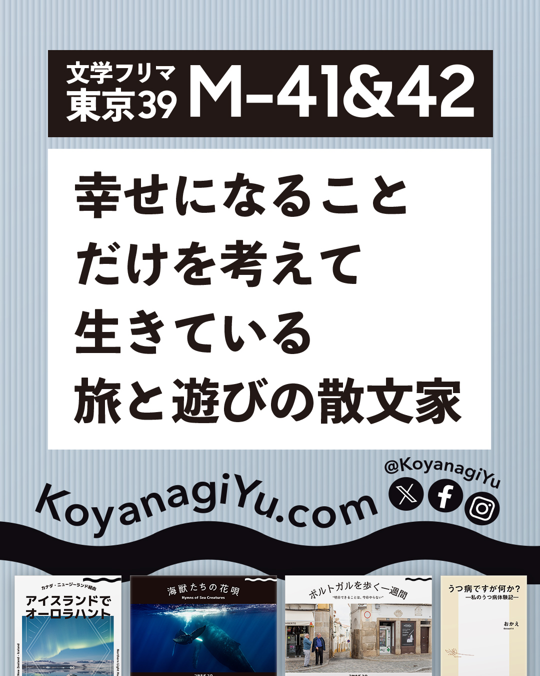 2024年12月1日(日)に、東京ビッグサイトで行われる「文学フリマ東京39」に「KoyanagiYu.com」として初出店します。今回は新刊を4冊用意できたのですが、文学フリマ初出店ということで冊数が見えず、大変弱気な発行部数となったため、コヤナギユウ著書についてはシリアルナンバーを付与します。