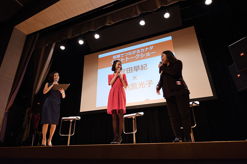 大納言光子さんご本人と、「モザイク -カナダ-」主役の安田早紀さんが登場。好対照な二人の“カナダミューズ”による、カナダの魅力を語った。また、“バンドメンバーの半分がカナダ”というユニット「MONKEY MAJIK」の“カナダの方”のお二人がライブを披露した。