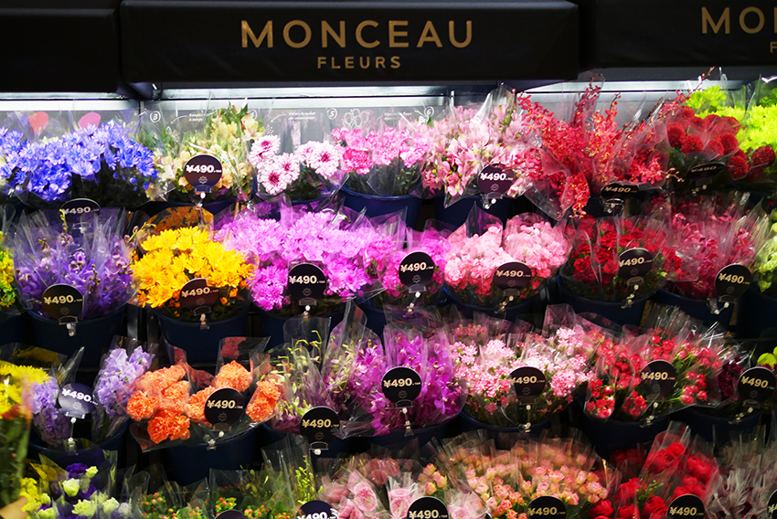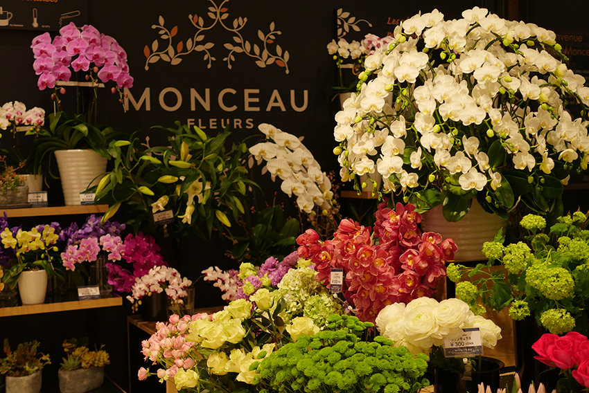 華やかなマロニエゲートのマロニエ通り口を飾るお花屋さんは、1965年パリ生まれ。毎日の生活をさりげなくお花買い、生活を彩るパリジャンのお花の買い方を日本でもということで、手軽に花を手に取れる店舗作りをしているというモンソーフルール。豪華な花鉢やルームフレグランスから、デイリー価格のお花まで、花と暮らすのがとても楽しくなりそうだと思ったよ。