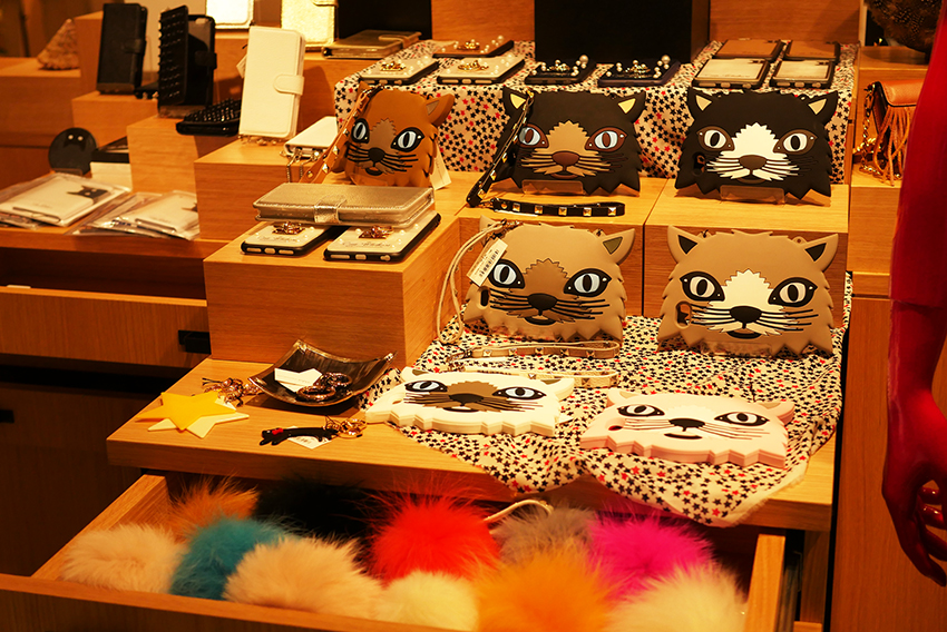 直訳して“猫のヒゲ”という名のブランド名は“スペシャルなもの”という意味もあり、ヨーロッパでは縁起がいいものとされているとか。こちら、ダブルスタンダードのスピンオフブランドで、猫のヒゲのように繊細なアクセサリーを中心にあつかった雑貨屋さんなのだけど、何より目を引くのが猫のiPhoneケース! あまりのかわいさにみんなとかぶってしまいそうだけど、さまざまなストラップやチャームを組み合わせて自分らしくカスタマイズ可能。
