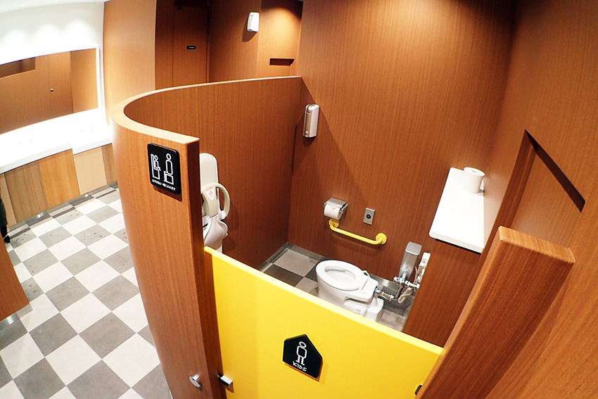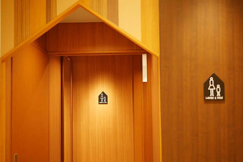 あとなにげに驚いたのがお手洗い。もしかしら3階だけかもしれないけれど、キッズ用の小さなトイレがあったの。ドアはちょっと低くて見守ることも可能だけど「自分で出来るもん!」なお年頃なキッズには嬉しい設備では。また、メイク直し用のミラーブースには1つずつコンセントがついてきて、緊急のスマホ充電や髪をコテで巻いたり出来そう。すごい気遣いだなぁって思った。