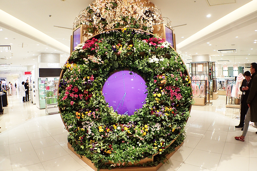 正面ゲートをくぐるとまずは大きな「ハナドケイ」がお出迎え。