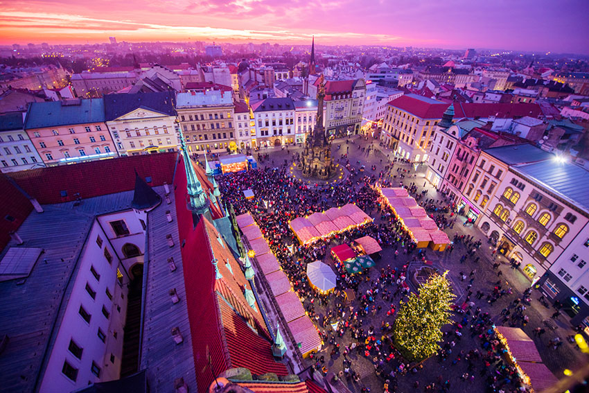 チェコ(モラビア)の政治力を示した世界遺産「三位一体の柱」や、美しいクリスマスマーケットが魅力の街オロモウツ。