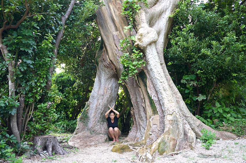 透明度の高さや、サンゴやお魚のダンスにも驚いたけど、島の木々が映り込んで、何とも不思議な色合に。